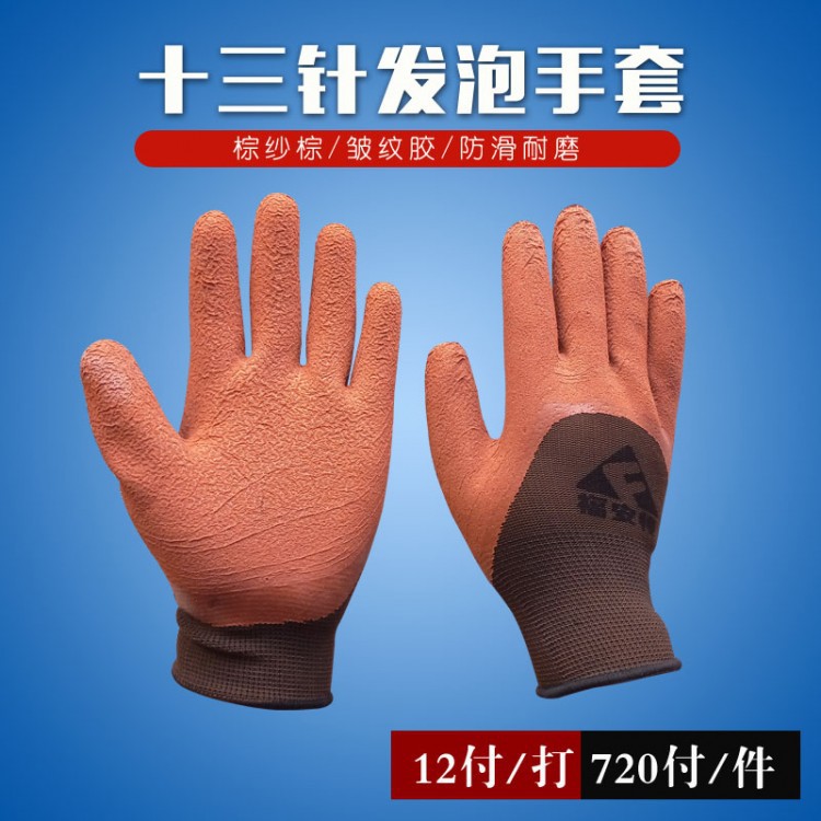 十三針發(fā)泡棕紗棕膠手套